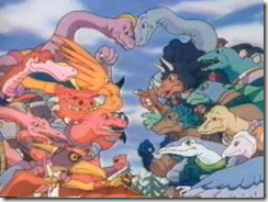Caricatura clásica de mis épocas, miren como cada dinosaurio "bueno" tiene su contraparte "malvada" jojojo